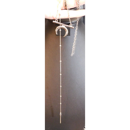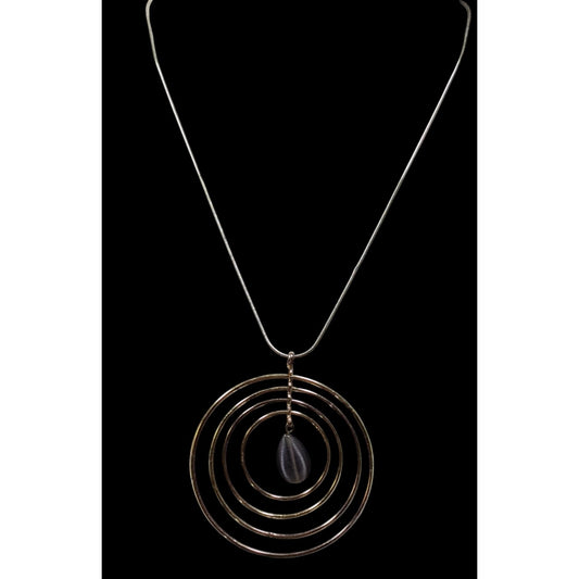 Gold & Silver Spiral Tone Pendant Necklace With Teardrop Charm On Snake Chain