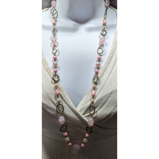 Coquette Pink And Gold Tone Beaded Chain Necklace