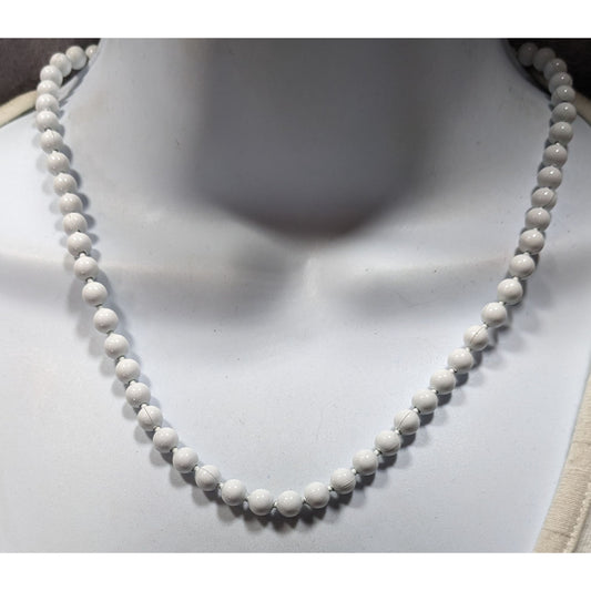 Turquoise & White Beaded Necklace With Silver Tone Accents & Adjustable Chain