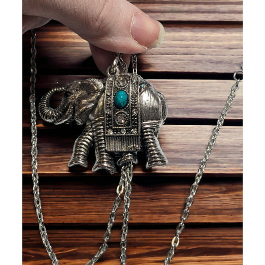 Silver Bohemian Elephant Pendant Necklace
