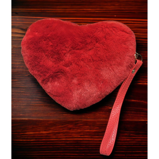 Red Plush Heart Clutch/Wristlet