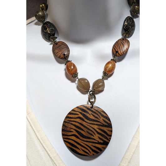Tiger Wood Beaded Necklace
