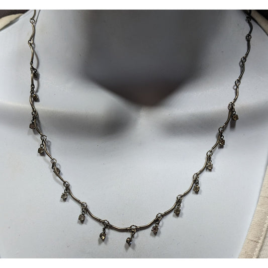 Silver-Tone Necklace With Dangling Crystal Accents & Adjustable Chain