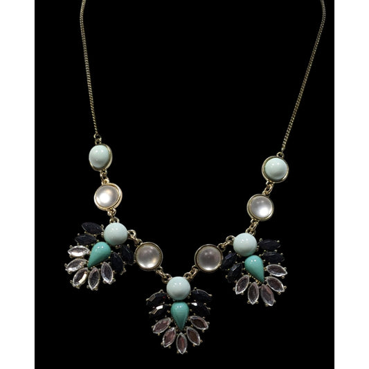 Liz Claiborne Art Deco Style Gold-Tone Necklace With Turquoise Black & Clear Gem Accents