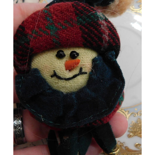 Vintage 90s Plush Snowman Brooch With Bell Accents