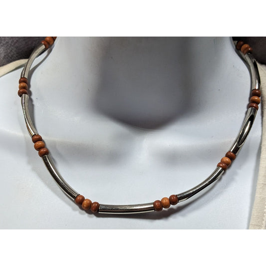 Vintage 90s Brown And Silver Tone Open Tube Beaded Necklace