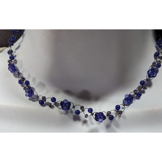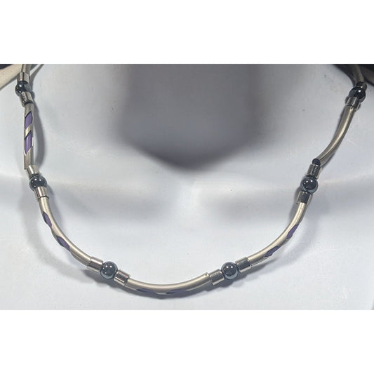 Vintage 90s Silver Tone Tube Beads With Purple Rubber Accents And Hematite Accent Beads