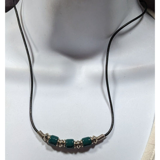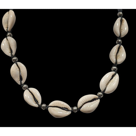Vintage 90s Beachy Puka Shell Tie On Necklace With Silver Tone Accent Beads