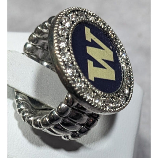 Washington Huskies Blue And Silver Tone Rhinestone Stretch Ring