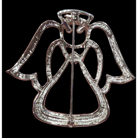 Whimsical Bright Silver Tone Angel Brooch With Rhinestone Eyes