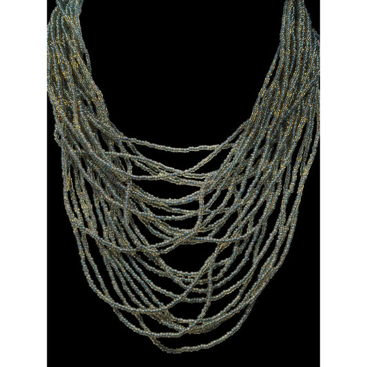 Whimsical Elegant Blue And Gold Tone Glass Beaded Layered Necklace