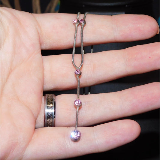 Whimsical Elegant Pink And Silver Tone Lariat Necklace
