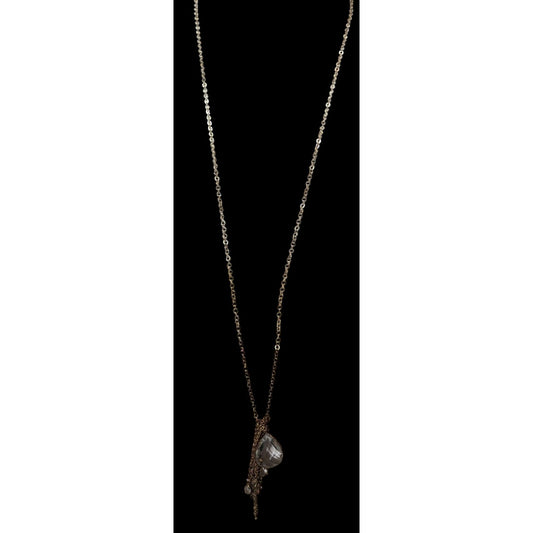 Whimsical Crystal Teardrop Y Drop Necklace On Silver Tone Chain