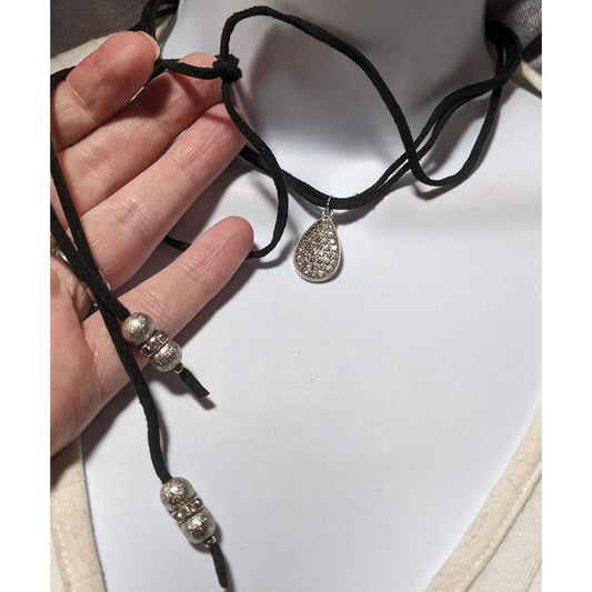 Whimsigoth Black Beaded Choker/Lariat Necklace