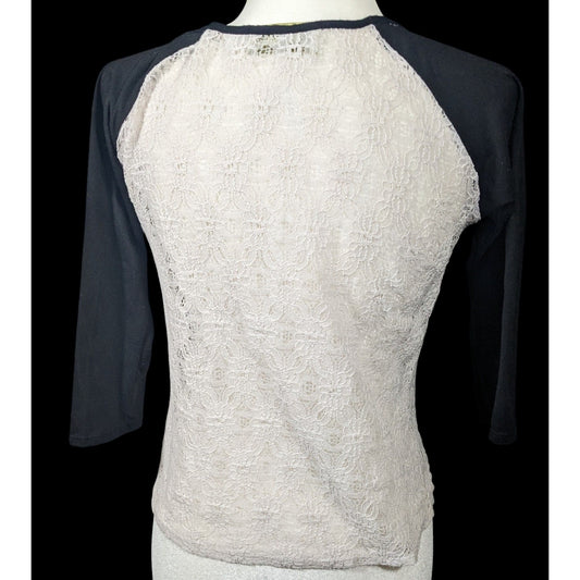 Woo Raglan Floral Lace Black And White Top Size Small