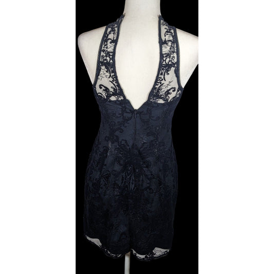 Adrianna Papell Dark Blue Floral Lace Dress