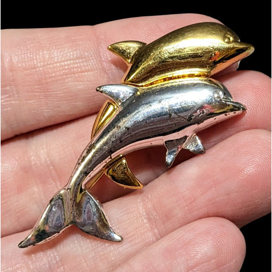 Vintage Napier Mixed Metal Tone Dolphin Brooch