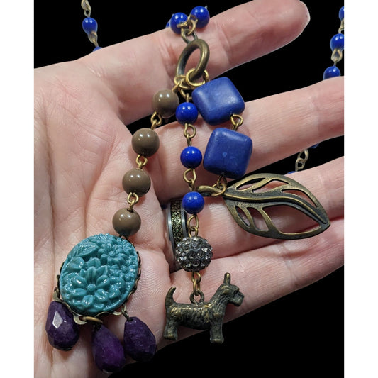Vintage David Aubrey Blue Tassel Charm Necklace