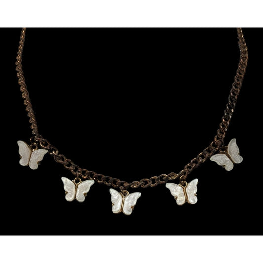 Fairycore Butterfly White And Antiqued Gold Tone Charm Necklace