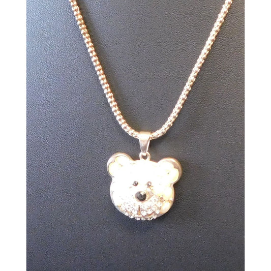 Fantasy Glam Faux Pearl And Rhinestone Embellished Bear Necklace