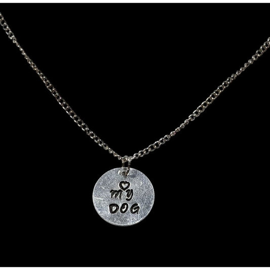 Love My Dog Hand Stamped Silver Tone Pendant Necklace