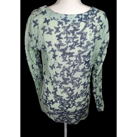 N & Willow Italy Bohemian Butterfly Blue And Green Top