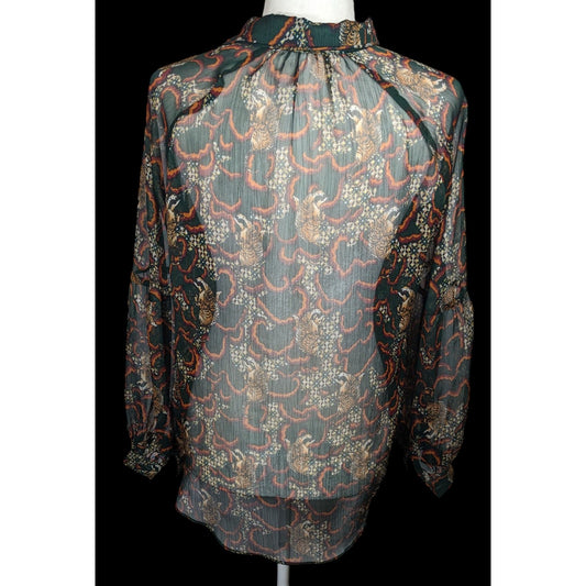 Anthropologie TP Sheer Green Tiger Button Up Blouse