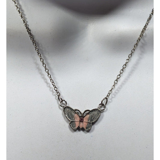 Fairycore Butterfly Pendant Necklace With Pink And Silver Tone Shimmer Enamel