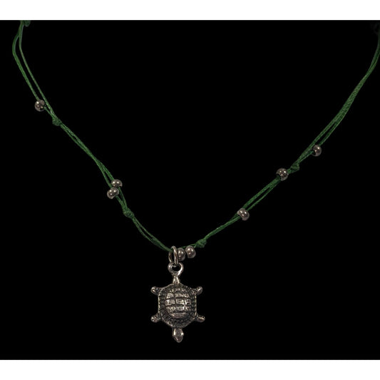 Minimalist Beachy Green And Silver Tone Turtle Necklace