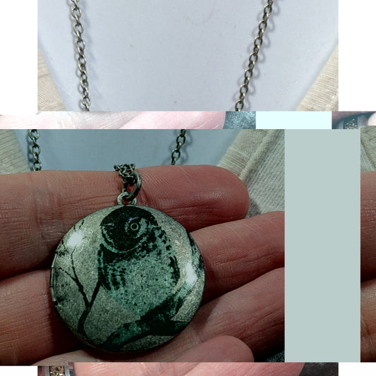 Nature Themed Owl Front Silver Tone Locket Necklace