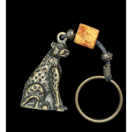 Vintage Bronze Leopard Keychain With Bead Accent