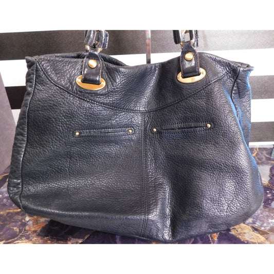 B. Makowsky Black Genuine Leather Quilted Purse With Gold Hardware & Leopard Print Lining
