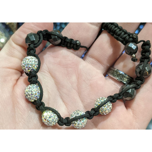Black Aurora Borealis Beaded Shambala Bracelet