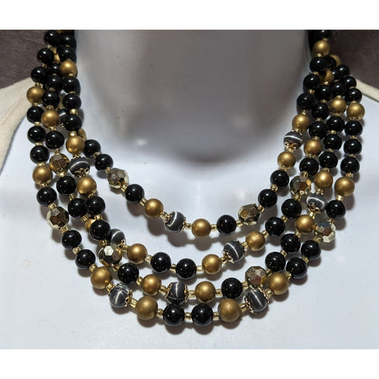 Vintage Japan Black And Gold Beaded Multilayer Necklace