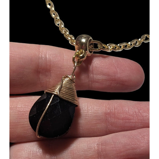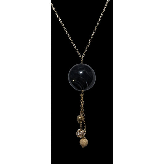 Glam Goth Black And Gold Glass Pendant Necklace