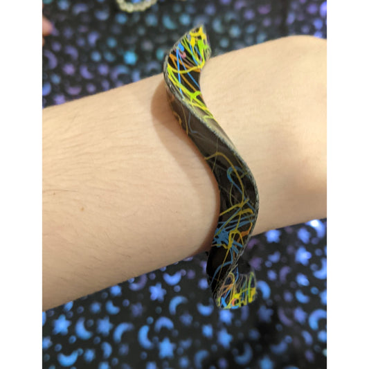 Black Retro Wiggle Bracelet With Rainbow Squiggles