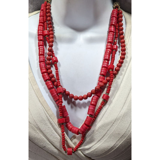 Vintage Red Stone And Glass Layered Tie-On Necklace