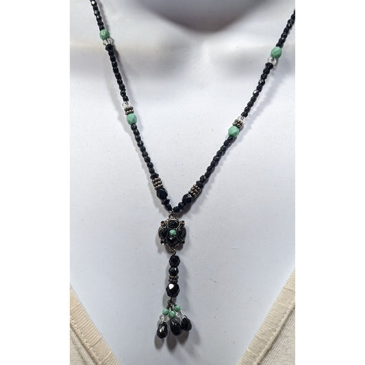 Black And Grey Beaded Tassel Necklace With Faux Pearl Accents