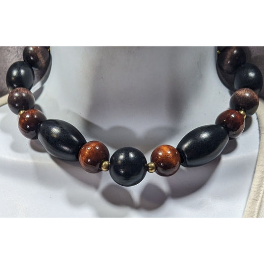 Vintage Brown And Black Wood Beaded Necklace