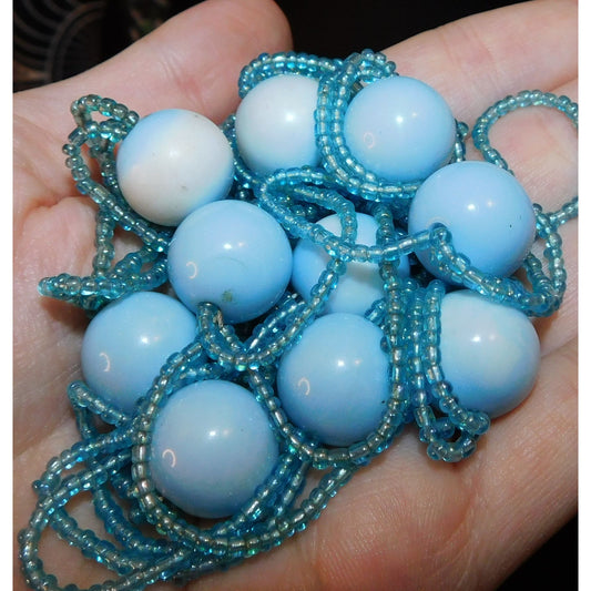 Artisan Blue Yellow Lampwork Glass Beaded Necklace With Toggle Clasp