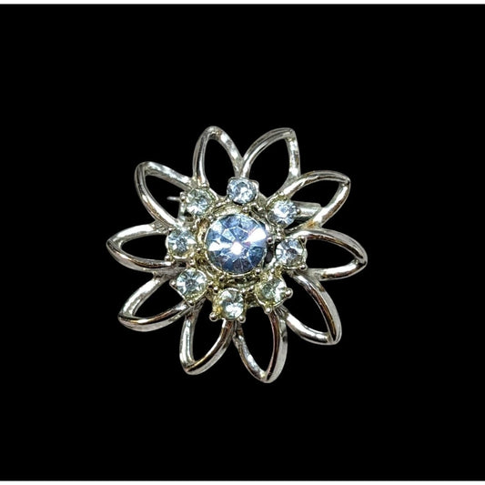 Vintage Blue And Silver Star Flower Rhinestone Brooch