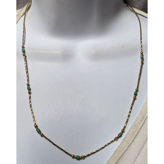 Minimalist Elegant Turquoise And Gold Beaded Necklace