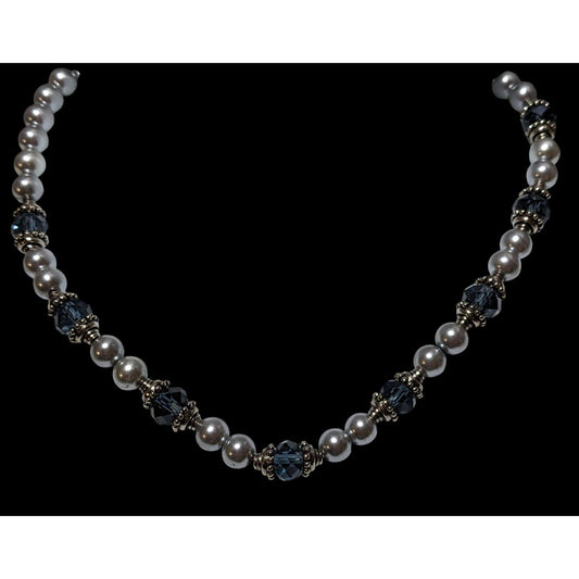 Elegant Silver Faux Pearl Beaded Glass Necklace