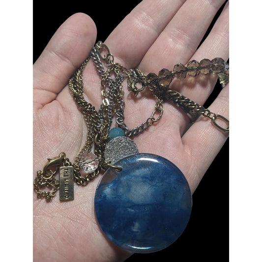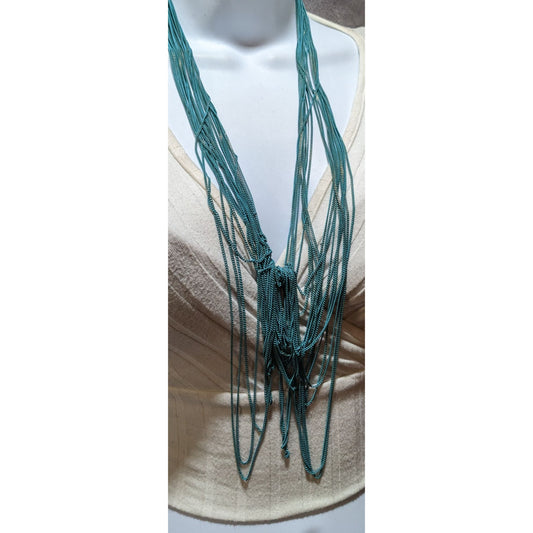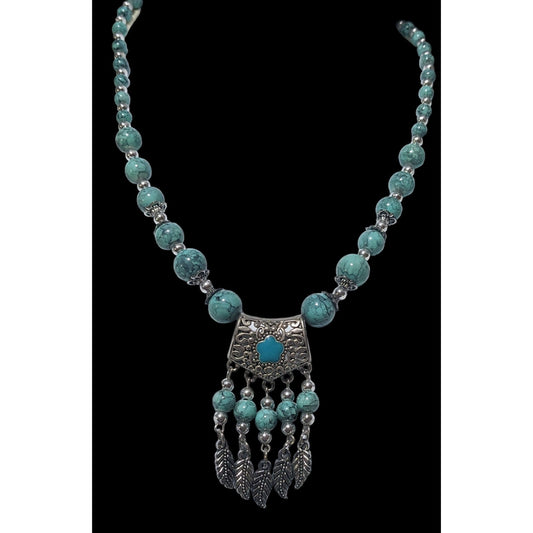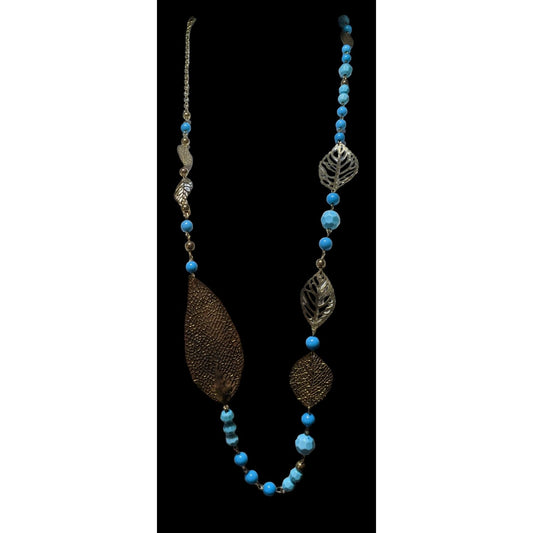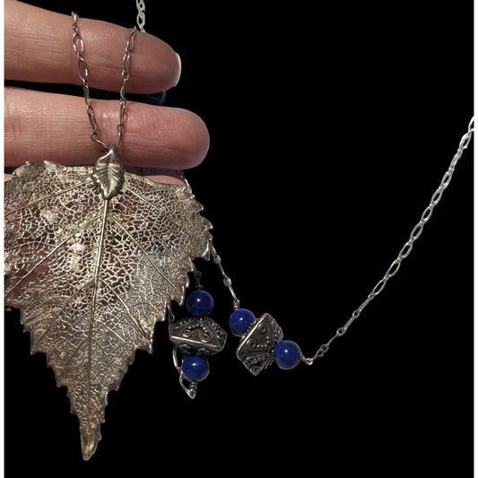 Vintage Silver And Blue Electroplated Birch Leaf Necklace