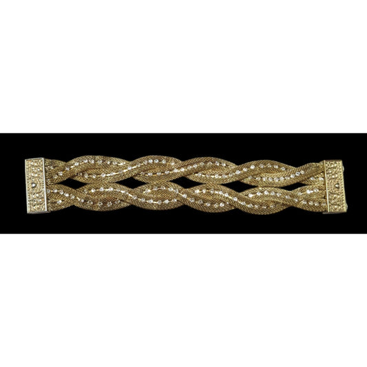 Vintage Gold Tone Mesh And Rhinestone Braided Magnetic Bracelet