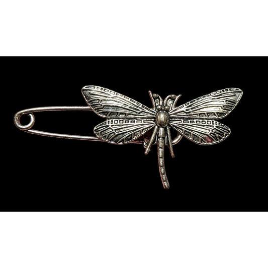 Silver Tone Dragonfly Safety Pin Brooch