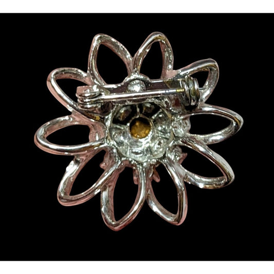 Vintage 50s Atomic Sunburst Silver Tone Rhinestone Brooch