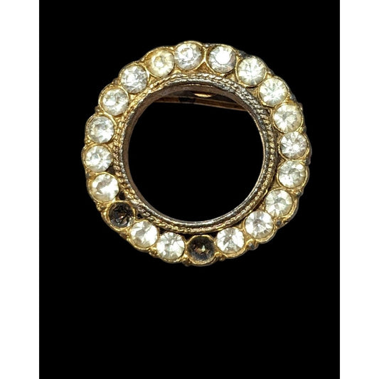 Vintage AJC Gold Tone Open Circle Rhinestone Brooch