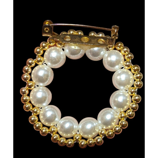 Handmade Beaded Gold Tone Faux Pearl Wreath Brooch