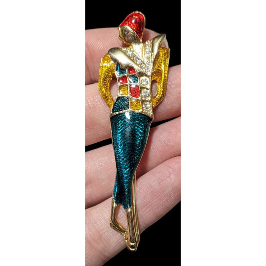 Vintage Art Deco Bright Enamel Rhinestone Lady Brooch